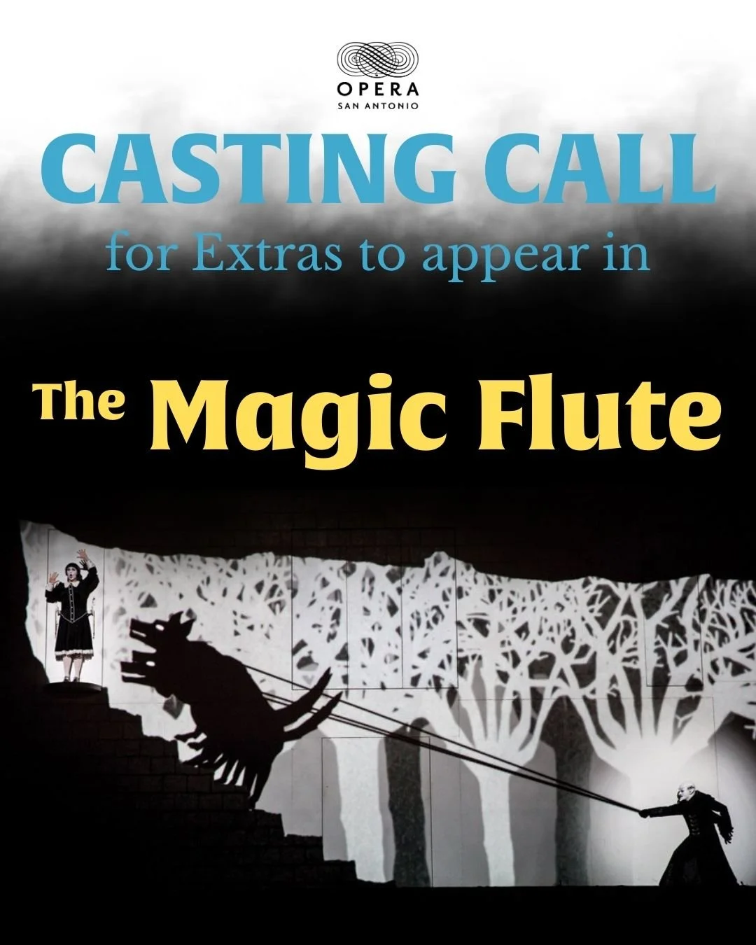 OPERA San Antonio is casting extras, known in opera as supernumeraries, for our production of The Magic Flute. We are looking to engage 2 men and 1 woman for the production. If you’re interested please click on the button below to fill out a Google Form and a member of the OSA staff will be in touch with you soon.