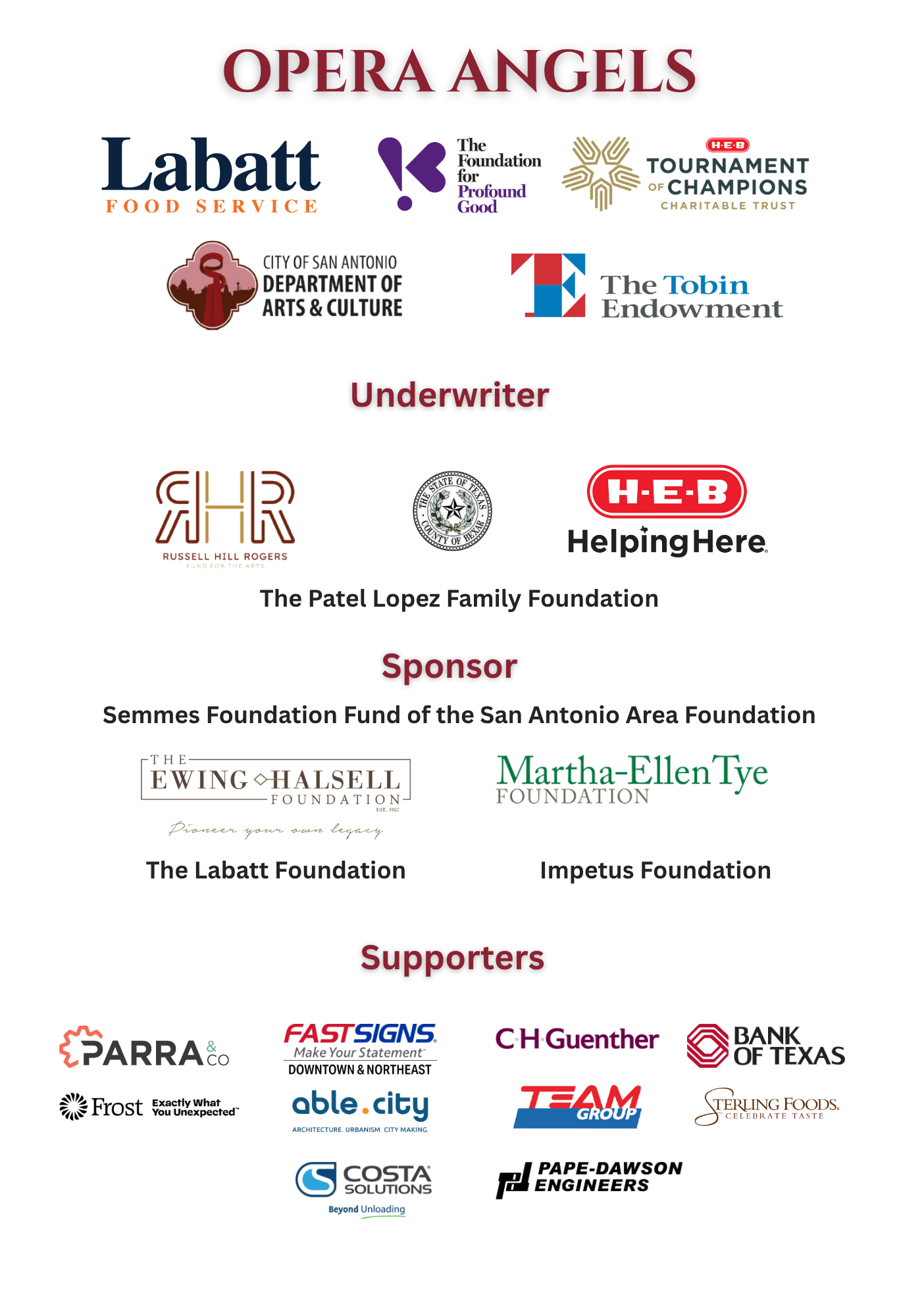 Opera is more than a performance—it is a celebration of culture, emotion, and shared experience. Your support helps us ensure that everyone in our city has access to the arts they deserve. Together, we can continue to build a vibrant cultural future for San Antonio.